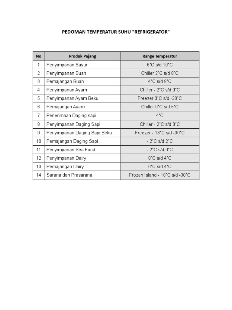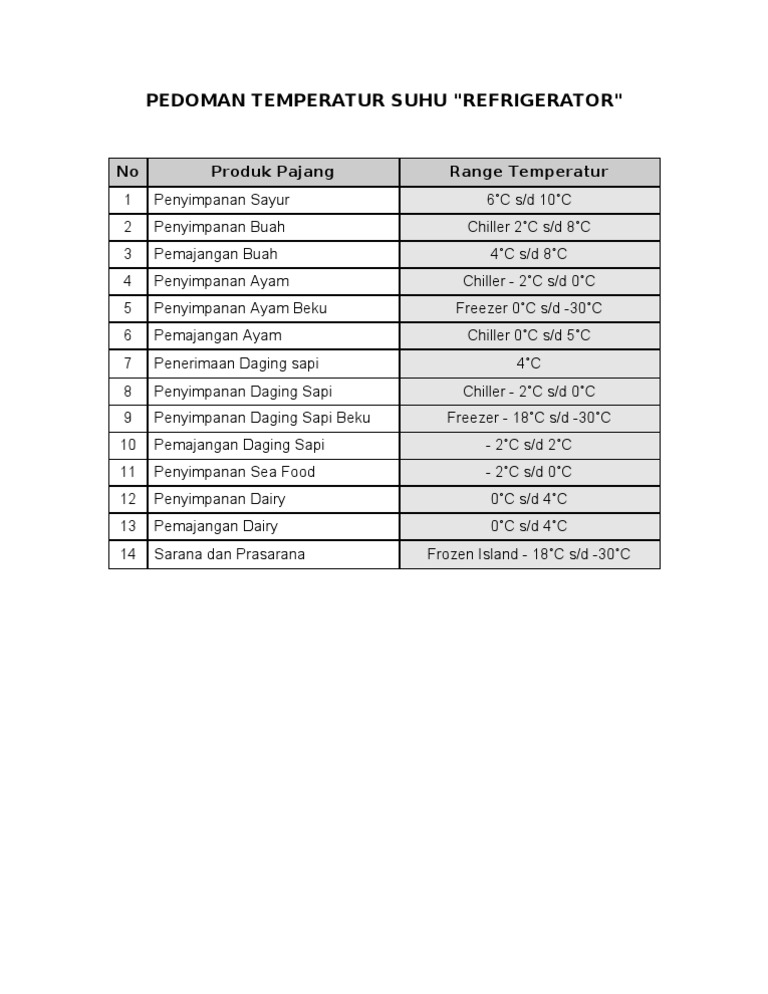 Ada 2 macam jenis skala yaitu skala Celsius dan skala Fahrenheit. Berikut ini merupakan tabel temperatur penyimpanan bahan makanan di dalam gudang. Walaupun lokasi saya di Taiwan gak perlu untuk balik ke Indonesia khusus untuk liat gudang langsung deal dengan Crewdible dan.